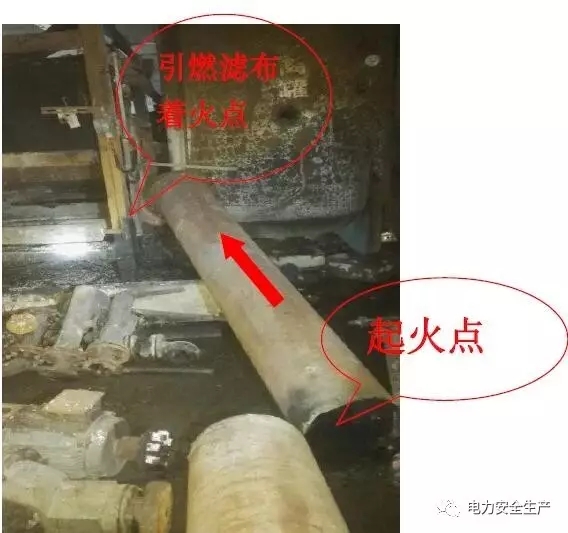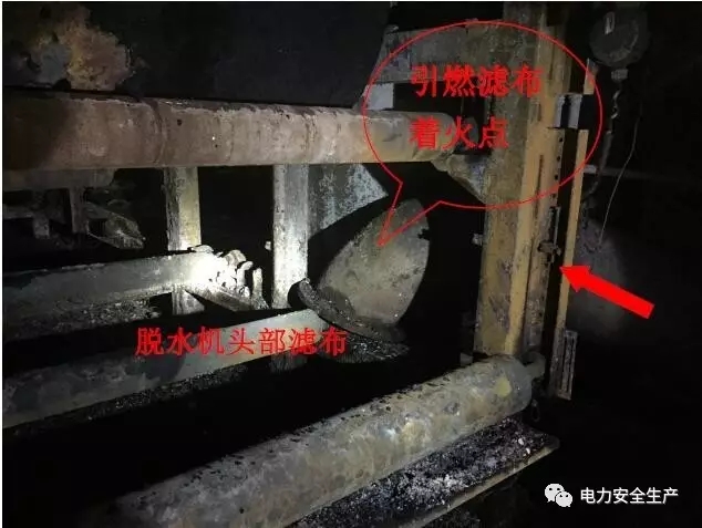 9 月1 日11 時(shí)47 分,#1 真空皮帶脫水機(jī)辦票拆除改造(施工單位為同煤環(huán)保)。9 月3 日15 時(shí)30 分左右,施工單位拆除真空泵到汽水分離罐連接管道,用倒鏈將管道固定后將該管道兩頭法蘭連接拆開,由于管子較長(zhǎng)(7 米左右),現(xiàn)場(chǎng)位置狹窄,無法將管道放至地面,15 時(shí)45 分左右施工單位采用氣割辦法從管道中間割開管道,由于該管道是襯膠管道,施工人員在割除管道過程中引起管道內(nèi)襯膠著火,施工人員將管道割開后,管子一頭朝上搭到真空皮帶脫水機(jī)的濾布上(濾布為聚酯纖維材料),由于管子傾斜后形成抽力,管道內(nèi)明火迅速竄出引發(fā)#1 真空皮帶脫水機(jī)濾布著火。施工人員發(fā)現(xiàn)著火后立即從二層拿來兩具滅火器進(jìn)行滅火,另外2人到零米馬路對(duì)面找到兩具滅火器,進(jìn)行撲救。由于火勢(shì)迅速蔓延,四具滅火器用完后無法將火撲滅,施工人員便到對(duì)面輔控樓取來五具滅火器,等取來滅火器后,皮帶機(jī)房已經(jīng)是濃煙彌漫,人員無法進(jìn)入,現(xiàn)場(chǎng)監(jiān)護(hù)人員隨即報(bào)告相關(guān)負(fù)責(zé)人,并報(bào)119 火警。