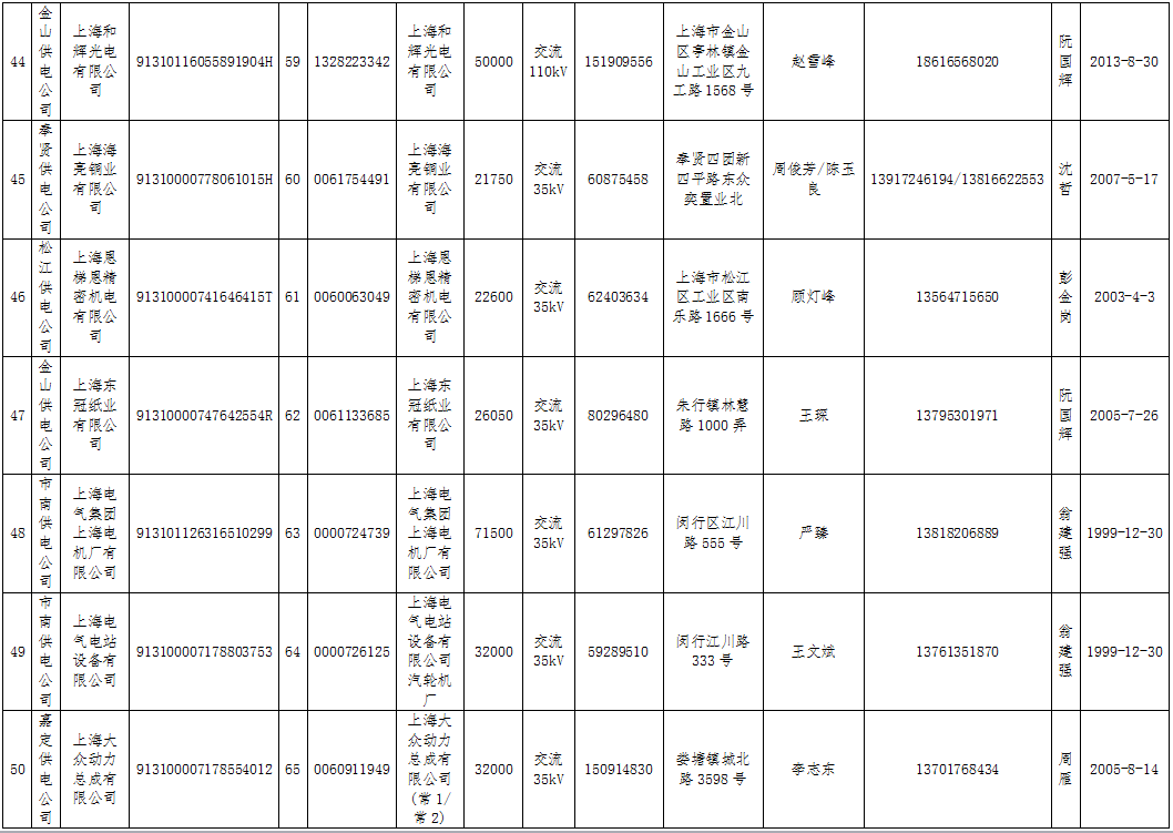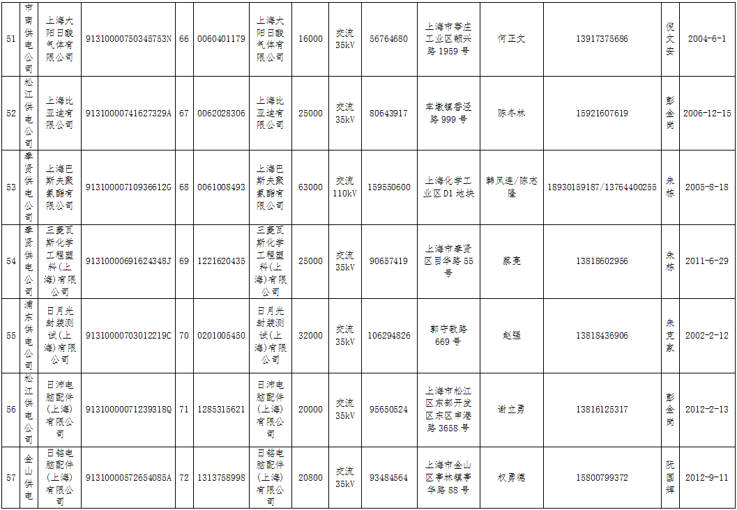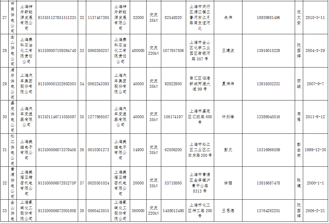 上海第一批直接交易準(zhǔn)入電力用戶名單