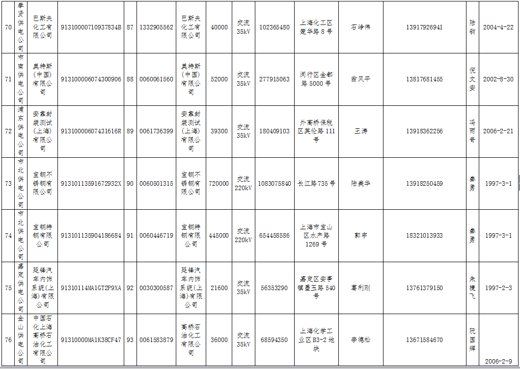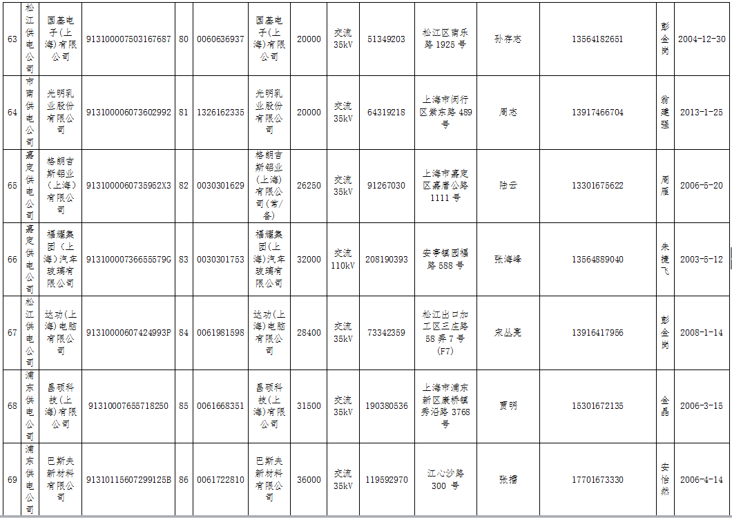 上海第一批直接交易準(zhǔn)入電力用戶名單