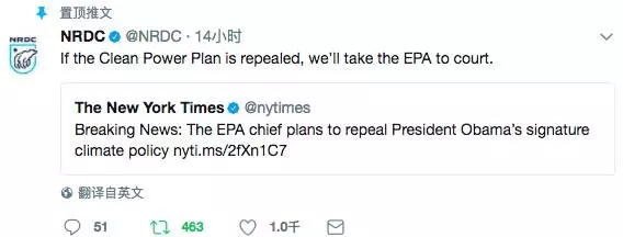 美國自然資源保護(hù)委員會(huì)稱,《清潔電力計(jì)劃》是美國遏制氣候變化危害影響采取的有史以來最重要的一步,如果該計(jì)劃被廢除,他們會(huì)將美國環(huán)境保護(hù)局告上法庭。