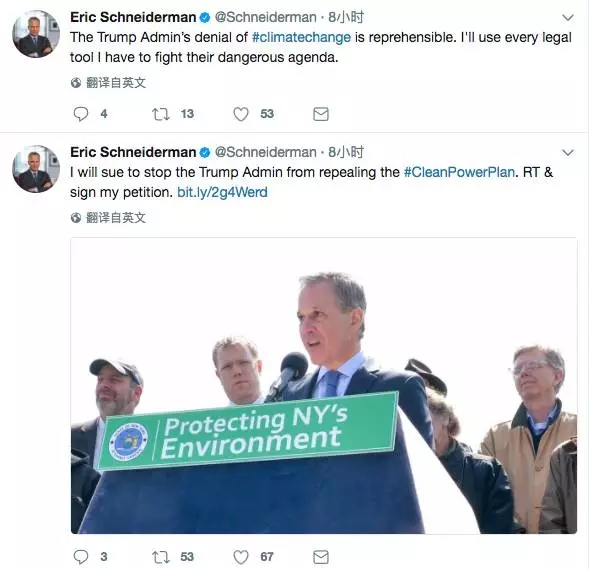 “特朗普當(dāng)局無視氣候變化的行為是不負(fù)責(zé)任的,我要用盡一切法律手段來回?fù)暨@個(gè)危險(xiǎn)的議程。”
