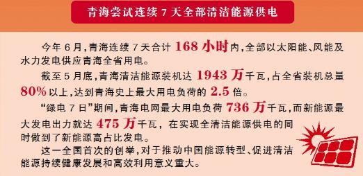 今年6月,青海連續(xù)7天合計(jì)168小時(shí)內(nèi),全部以清潔能源發(fā)電供應(yīng)青海全省用電。全國首次的創(chuàng)舉,對(duì)于推動(dòng)中國能源轉(zhuǎn)型、促進(jìn)清潔能源持續(xù)健康發(fā)展和高效利用意義重大,也向世界展示了中國推進(jìn)清潔發(fā)展的堅(jiān)定信心和技術(shù)實(shí)力。