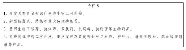 10.生物醫(yī)藥。著力提高生物醫(yī)藥產(chǎn)業(yè)的整體科技含量和附加值,重點(diǎn)開發(fā)一批創(chuàng)新藥物,培育壯大生物醫(yī)藥產(chǎn)業(yè),提高醫(yī)藥產(chǎn)業(yè)競(jìng)爭(zhēng)力。著力打造哈爾濱—大慶—牡丹江生物醫(yī)藥產(chǎn)業(yè)集群。采用先進(jìn)適用的生物工程技術(shù),改造傳統(tǒng)化學(xué)制藥、中成藥和生化制藥產(chǎn)業(yè)。開發(fā)特色原料藥新品種,注重產(chǎn)品系列化,延伸產(chǎn)業(yè)鏈條,擴(kuò)大國(guó)內(nèi)市場(chǎng)份額。依托哈藥集團(tuán)、葵花藥業(yè)、譽(yù)衡藥業(yè)、大慶福瑞邦藥業(yè)、珍寶島藥業(yè)、友搏藥業(yè)等骨干企業(yè),加強(qiáng)生物技術(shù)藥物的研究,開發(fā)具有自主知識(shí)產(chǎn)權(quán)的生物工程藥物,促進(jìn)生物技術(shù)藥物產(chǎn)業(yè)化和中藥現(xiàn)代化。發(fā)展新型抗肝炎、結(jié)核等重大傳染病疫苗,基因生物工程藥、抗體藥、多肽藥等生物技術(shù)藥研發(fā),抗病毒、抗耐菌等生物藥品以及中藥新藥提取精制。推廣先進(jìn)的提取純化技術(shù),實(shí)施傳統(tǒng)中藥二次開發(fā),重點(diǎn)發(fā)展雙黃蓮粉針和口服液、護(hù)肝片、清開靈顆粒、疏血通注射液等具有市場(chǎng)競(jìng)爭(zhēng)力的產(chǎn)品。