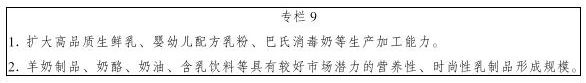 1.高品質(zhì)乳制品。瞄準(zhǔn)國(guó)內(nèi)健康性消費(fèi)需求變化趨勢(shì),加速培育和壯大擁有核心競(jìng)爭(zhēng)力、具備一定國(guó)際化經(jīng)營(yíng)能力的大型乳制品企業(yè)集團(tuán),打造全國(guó)優(yōu)質(zhì)嬰幼兒配方乳粉產(chǎn)業(yè)基地。以完達(dá)山乳業(yè)股份有限公司、飛鶴乳業(yè)有限公司、萬家寶鮮牛奶(投資)有限公司、紅星集團(tuán)股份有限公司等龍頭企業(yè)為重點(diǎn),發(fā)展適合國(guó)人體質(zhì)、更親近母乳的高端嬰幼兒配方乳粉,加快發(fā)展高品質(zhì)生鮮乳、含乳飲料、高端中老年配方乳粉、系列功能性營(yíng)養(yǎng)配方乳粉、奶酪、乳珍、奶油以及濃縮乳清蛋白粉等產(chǎn)品。