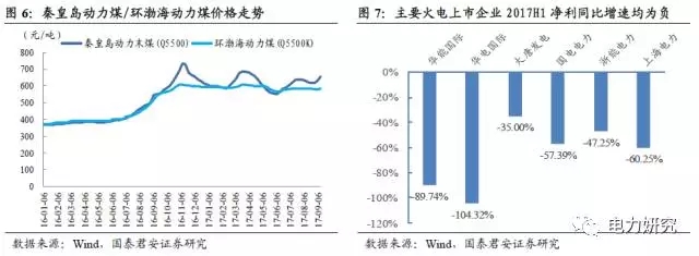 煤價(jià)自2016年下半年開啟上漲趨勢(shì),吞噬火電企業(yè)利潤(rùn)。受去產(chǎn)能政策顯效,自去年下半年以來,煤炭?jī)r(jià)格迅猛上漲,今年以來的最高價(jià)格甚至超過去年下半年峰值,最新一期(9月13日)的環(huán)渤海動(dòng)力煤價(jià)格指數(shù)鎖定在583元/噸的高位。煤價(jià)大幅上行,極大擠壓了電力行業(yè)的利潤(rùn)空間,火電企業(yè)利潤(rùn)明顯下滑。根據(jù)Wind申萬行業(yè)分類,火電企業(yè)2017年上半年歸母凈利潤(rùn)大幅下滑70%。