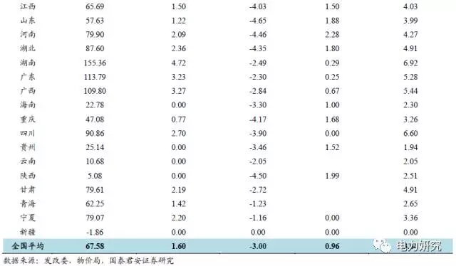 3) 供電標準煤耗采用2017年7月國家統(tǒng)計局發(fā)布的各省數(shù)據(jù)。