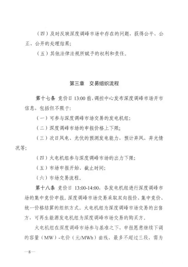 近日山西能源監(jiān)管辦印發(fā)了《山西電力風(fēng)火深度調(diào)峰市場操作細(xì)則》。文件共包括七章,四十七條,通過明確深度調(diào)峰交易的組織流程、價(jià)格申報(bào)機(jī)制及計(jì)量與結(jié)算等交易環(huán)節(jié),實(shí)現(xiàn)深度調(diào)峰服務(wù)的市場化改革。通過市場化
