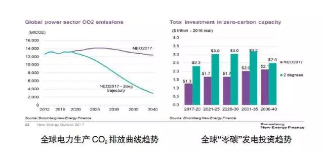 完成這樣的“減排目標(biāo)曲線”,需要世界各國(guó)共同遵守巴黎協(xié)定中各國(guó)的減排貢獻(xiàn)值目標(biāo)。通過(guò)分析發(fā)現(xiàn),在不增加任何附加成本的前提下,完成這樣的減排目標(biāo)是真實(shí)可行的。根據(jù)目前的減排現(xiàn)狀,與達(dá)成“降低2攝氏度”目標(biāo)仍存在一定差距,因此到2040年,全球仍需要約5.3萬(wàn)億美元的投資來(lái)推進(jìn)“零碳”發(fā)電發(fā)展以達(dá)成減排目標(biāo),與此同時(shí),關(guān)于氣候政策的風(fēng)險(xiǎn)也應(yīng)引起關(guān)注。
