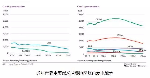 設(shè)備老化以及可再生能源的發(fā)展導(dǎo)致了目前煤電衰退的現(xiàn)狀。到2040年,歐洲及美國(guó)的煤電產(chǎn)能將分別下降87%和51%。但預(yù)言煤電產(chǎn)能全部退出市場(chǎng)還為時(shí)尚早,以亞洲為例,煤電在一段時(shí)間內(nèi)仍將在能源系統(tǒng)中扮演重要的角色