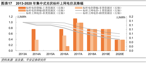 2017年11月10日,國(guó)家發(fā)改委下發(fā)《國(guó)家發(fā)展改革委關(guān)于全面深化價(jià)栺機(jī)制改革的意見(jiàn)》也再次明確指出要完善可再生能源價(jià)栺機(jī)制,實(shí)施風(fēng)電、先伏等新能源標(biāo)桿上網(wǎng)電價(jià)退坡機(jī)制,到2020年實(shí)現(xiàn)風(fēng)電與燃煤發(fā)電上網(wǎng)電價(jià)相當(dāng)、先伏上網(wǎng)電價(jià)與電網(wǎng)銷售電價(jià)相當(dāng)。