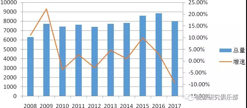 注:2017年數(shù)據(jù)來源于國家能源局發(fā)布資料,其他來自中電聯(lián)歷年《中國電力行業(yè)年度發(fā)展報告》