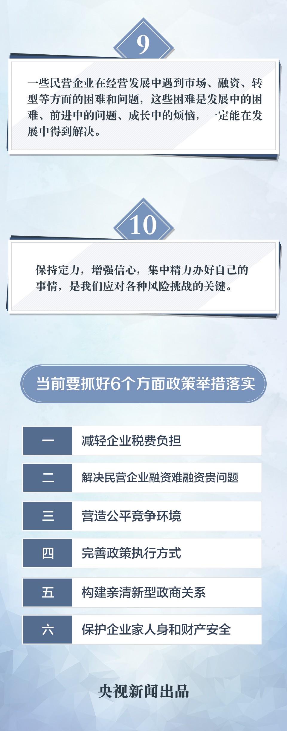 據(jù)新華社報道,座談會上,有10位企業(yè)家代表先后發(fā)言,就新形勢下支持民營企業(yè)發(fā)展提出意見和建議。發(fā)言過程中,習近平不斷提問和插話,就一些問題同民營企業(yè)家們深入交流,并要求有關(guān)部門認真研究、妥善解決。