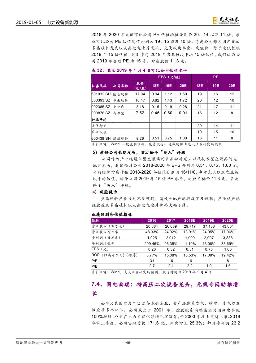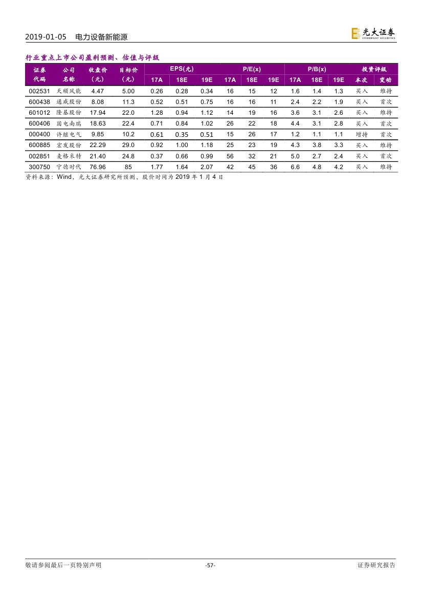 投資建議:看好行業(yè)各子板塊技術(shù)領(lǐng)先龍頭企業(yè),推薦天順風(fēng)能、通威 股份、國電南瑞、許繼電氣、隆基股份、宏發(fā)股份,麥格米特、寧德時代。