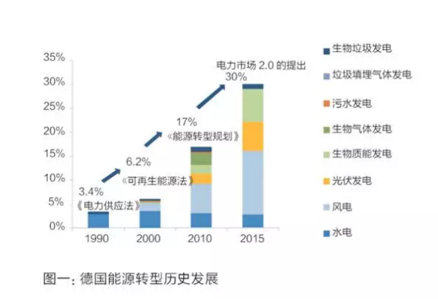 在高比例接納可再生能源的核心任務下,2 0市場的創(chuàng)新更多體現(xiàn)在三大構(gòu)成模塊中,分別是更強的市場機制建設、更靈活高效的電力供給體系和更高的電力保障能力。▼德國能源轉(zhuǎn)型成效卓著2000年《可再生能源法》頒布,