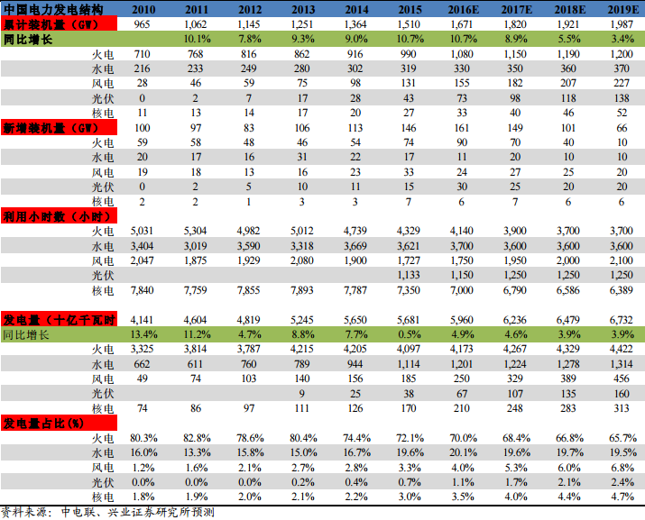 表2、中國電力結(jié)構(gòu)現(xiàn)狀和預(yù)測