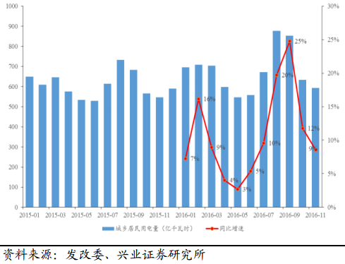圖12、2016年城鄉(xiāng)居民用電量持續(xù)較快增速