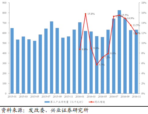 圖11、2016年第三產(chǎn)業(yè)用電量持續(xù)較快增速