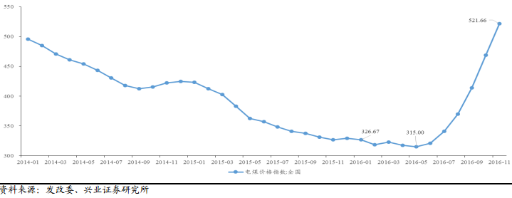 圖13、全國電煤價(jià)格指數(shù)(2014.01-2016.11)