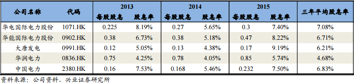 另一方面,火電股的股息率在資產(chǎn)荒和流動(dòng)性充裕的環(huán)境下顯得珍貴。我們用分紅公告前一日的收盤價(jià)計(jì)算,5家火電公司過去三年的平均股息率均在4-7%之間,其中以華電國際電力(1071.HK)和華能國際電力(902.HK)為高。另外華潤電力(836.HK)在2016年中報(bào)曾承諾“固定分紅”,約港幣0.8元左右,對(duì)應(yīng)目前股價(jià)股息率在6.5%左右,也具備較高吸引力,此外華潤電力具備顯著的集團(tuán)內(nèi)部資源優(yōu)勢,保障發(fā)電量同比增長。而華能國際電力是行業(yè)內(nèi)運(yùn)營能力最為優(yōu)秀的企業(yè),資產(chǎn)布局優(yōu)良,我們認(rèn)為公司將大幅度受益于火電行業(yè)邊際改善。