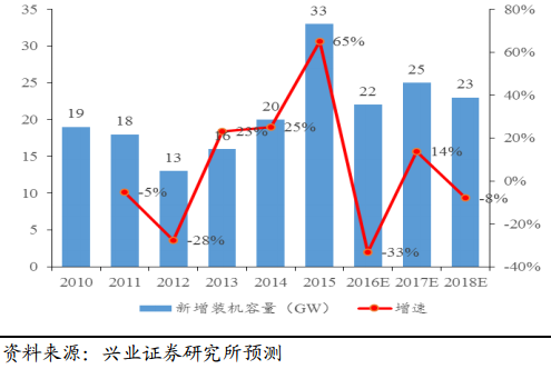 圖27、風(fēng)電新增裝機(jī)增長趨勢