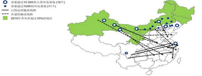 我國棄風(fēng)限電的原因很多,主要是風(fēng)資源與負(fù)荷錯(cuò)位分布引發(fā)的外送問題、電網(wǎng)建設(shè)滯后、部分區(qū)域搶裝以及與傳統(tǒng)化石能源發(fā)電之間的不同步導(dǎo)致的調(diào)峰電源不足等問題綜合所致。輸電通道-特高壓建設(shè)正在進(jìn)行時(shí),即將在1-2年內(nèi)進(jìn)入投產(chǎn)密集期。2014年7月7日召開的國家電網(wǎng)公司年中工作會(huì)議明確了“4交4直”共8條特高壓工程開工建設(shè)時(shí)間表,從2014年7月開始陸續(xù)開工,計(jì)劃2017年全部建成投運(yùn)。根據(jù)最新建設(shè)進(jìn)度,國家電網(wǎng)2015年特高壓建設(shè)大超此前預(yù)期。2015年第一、二季度“兩交兩直”特高壓工程核準(zhǔn)開工,錫盟~泰州〒800kV特高壓直流輸電工程核準(zhǔn)開工,上海廟~山東〒800kV特高壓直流工程相繼核準(zhǔn)。目前,國網(wǎng)公司已累計(jì)建成“三交四直”特高壓工程,在建“四交一直”特高壓工程,在運(yùn)在建特高壓輸電線路長度超過1.9萬千米,變電(換流)容量超過1.9億千伏安(千瓦),累計(jì)送電超過3,000億千瓦時(shí)。