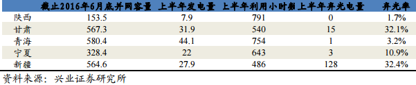 表6、2016年上半年西北地區(qū)五省棄光限電率