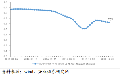 圖45、2016年電池片出廠價(jià)格(美元片)變化