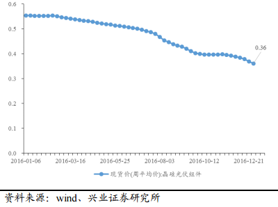 圖46、2016年組件出廠價(jià)格(美元/瓦)變化