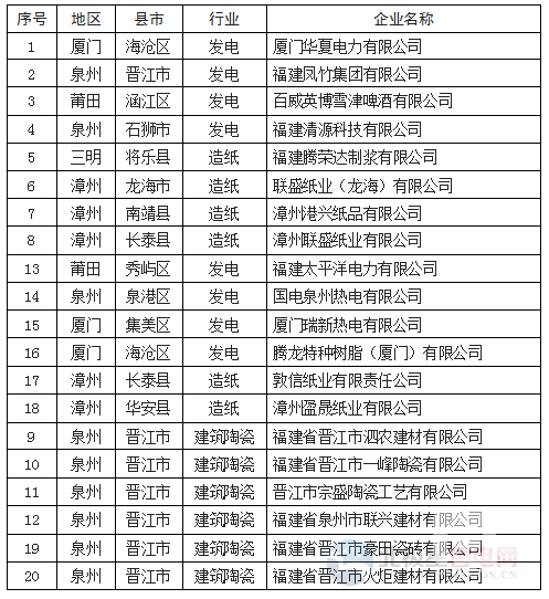 福建公布2016年度重點排放單位碳排放數(shù)據(jù)復(fù)查任務(wù)分配情況