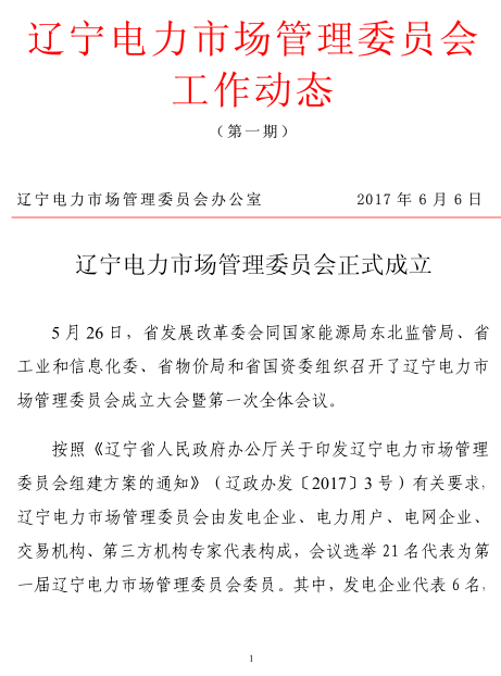 從遼寧電力交易中心獲悉遼寧電力市場(chǎng)管理委員會(huì)正式成立。按照《遼寧省人民政府辦公廳關(guān)于印發(fā)遼寧電力市場(chǎng)管理委員會(huì)給組建方案的通知》有關(guān)要求,遼寧電力市場(chǎng)管理委員會(huì)由發(fā)電企業(yè)、電力用戶、電網(wǎng)企業(yè)、交易