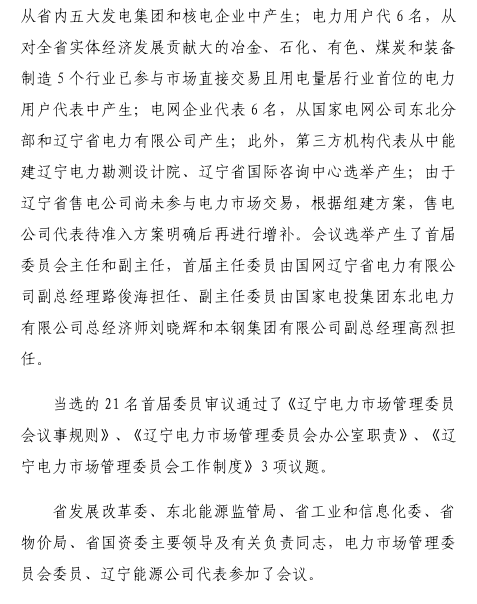 遼寧電力市場(chǎng)管理委員會(huì)正式成立