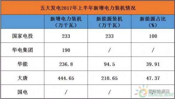 從已經(jīng)發(fā)布的五大發(fā)電2017年半年業(yè)績總結(jié)可以看出,在上半年,五大發(fā)電的電源建設(shè)中煤電建設(shè)步伐已經(jīng)顯著放緩,其中國家電投上半年新增電力裝機(jī)233萬千瓦,全部為可再生能源;新增電力裝機(jī)中,可再生能源占比最低的為華能,為94.5萬千瓦,也占到了全部新增電力裝機(jī)的40%。