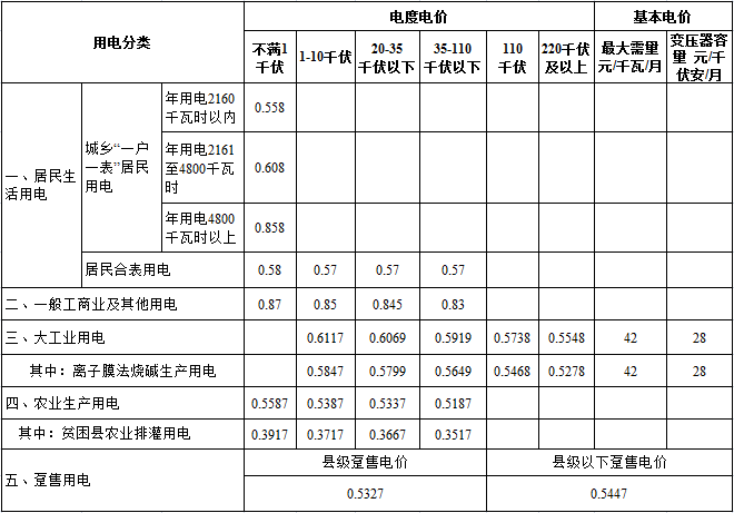 注:1.上表所列價格,均含農(nóng)村低壓電網(wǎng)維護(hù)費(fèi)1.88分錢,除農(nóng)業(yè)排灌用電外,均含農(nóng)網(wǎng)還貸資金2分錢。