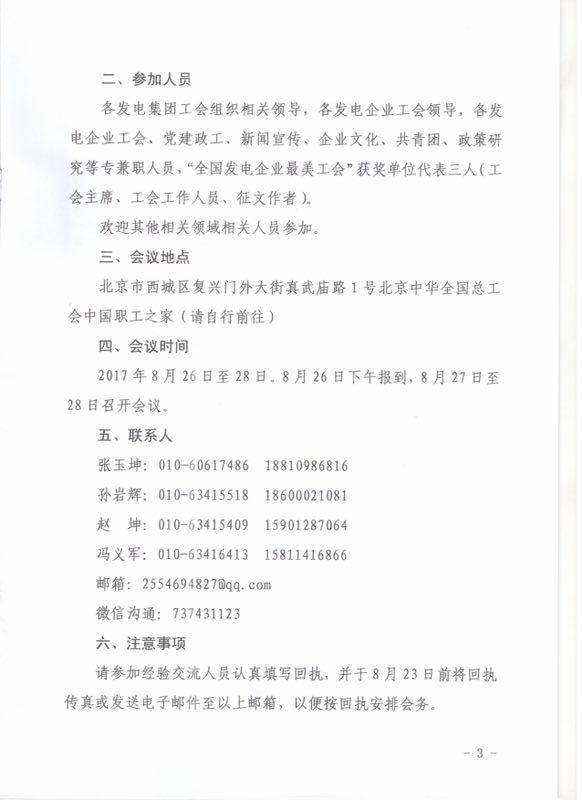 全國發(fā)電企業(yè)工會工作交流會召開的通知