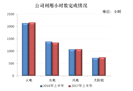 截至2017年6月30日,公司全資及控股各運(yùn)行發(fā)電企業(yè)累計(jì)完成發(fā)電量933.39億千瓦時(shí),上網(wǎng)電量883.51億千瓦時(shí),較去年同期分別增加了3.36%和3.04%。完成利用小時(shí)1836小時(shí),高于全國(guó)平均水平46小時(shí),其中:火電完成2154小時(shí),水電完成1341小時(shí),風(fēng)電完成1079小時(shí),光伏完成749小時(shí)。