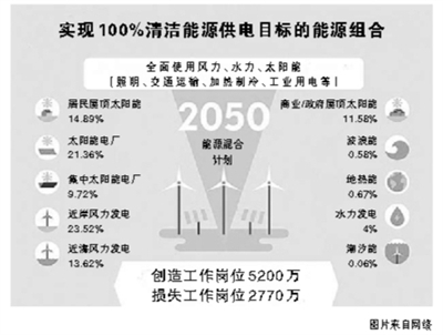 美科研人員發(fā)布“可再生能源路線圖”認(rèn)為——2050年,139個(gè)國(guó)家可100%用上清潔電