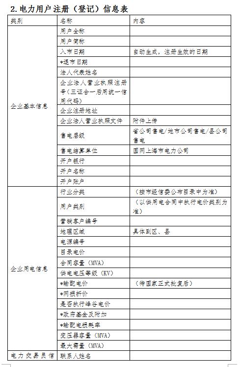 上海電力交易中心關(guān)于電力用戶系列信息的填報(bào)
