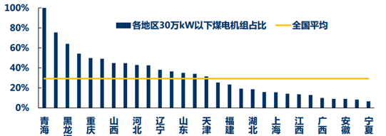 各地30萬kW以下燃煤機組占比(含熱電)