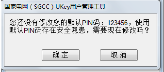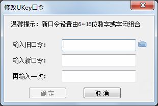 當您首次使用UKey時,系統(tǒng)會自動彈出對話框建議您修改UKey初始口令。UKey的初始口令為“123456”,新口令由字母、數(shù)字或者二者任意組合而成。如下圖。