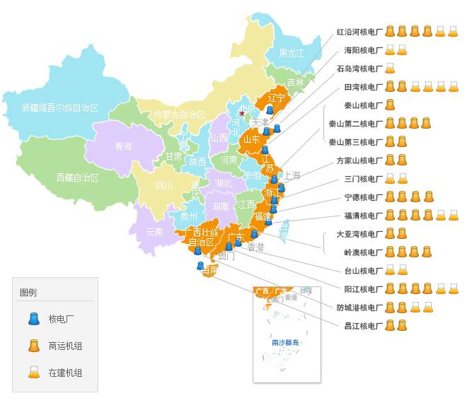 最新!中國大陸運(yùn)營和在建核電分布圖、大數(shù)據(jù)