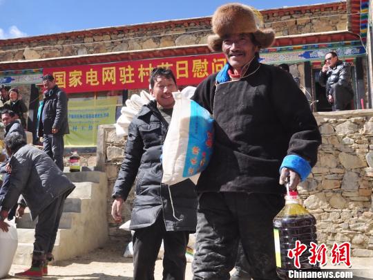西藏農牧民手拿慰問品。國家電網供圖攝