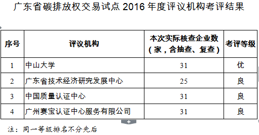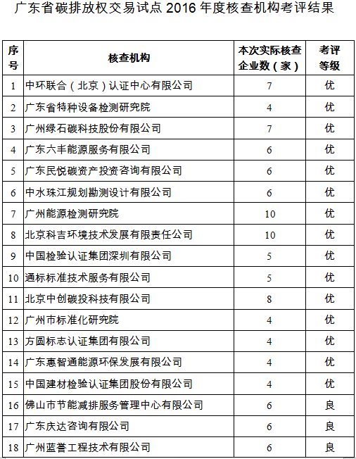 廣東省碳排放權(quán)交易試點2016年度核查相關(guān)工作考評結(jié)果公布