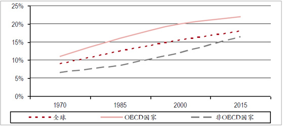 發(fā)展中國家電力需求持續(xù)增長,亞非地區(qū)增量尤甚:根據(jù)國際能源署數(shù)據(jù),2014年,以發(fā)展中國家為主的非OECD國家全年電力消費量為10.52萬億kWh,同比增長3.9%。從1974年至2014年間,非OECD國家年均電力消費量增長率為5.1%,其在全球總電力消費量中的占比從26%提升到了53%。從終端能源消費占比來看,1970-2015年,電力消費占比從9%提升到了18%,其中OECD國家從11%提升到22%,非OECD國家從6.5%提升到16.5%,增幅大于OECD國家,且未來空間巨大。根據(jù)國家電網(wǎng)《全球能源分析與展望》報告,到2050年,全球電力需求將增長到68.9萬億kWh,年均增長3.2%,增速與1980至2014年期間的增速基本持平,較一次能源需求增速快2.2個百分點。其中,亞太地區(qū)電力需求將由9.7萬億kWh增至34.9萬億kWh,是需求增量最大的區(qū)域,貢獻(xiàn)全球增量的50%以上;非洲是全球電力需求增長最快的地區(qū),年均增長6.7%。