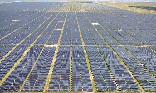 資料圖片:位于青海省海南藏族自治州共和縣境內(nèi)的光伏產(chǎn)業(yè)園一角。新華社記者張宏祥攝
