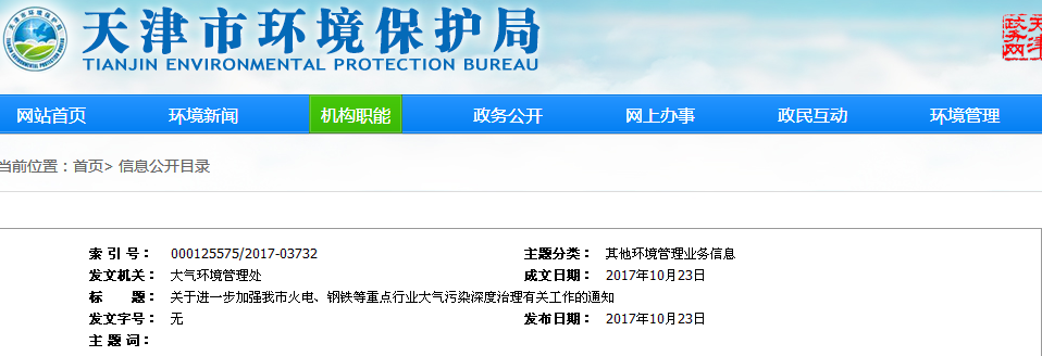 天津:關(guān)于進一步加強我市火電、鋼鐵等重點行業(yè)大氣污染深度治理有關(guān)工作的通知