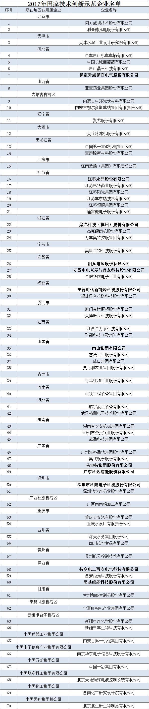 附件:2017年國(guó)家技術(shù)創(chuàng)新示范企業(yè)名單