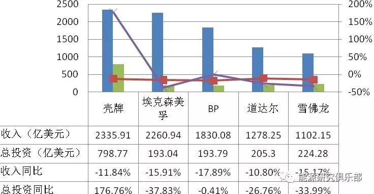圖1 2016年國(guó)際石油公司收入和投資變化情況