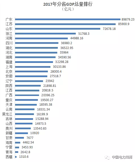 注:以上各省2017年GDP數(shù)據(jù)由官方公布數(shù)據(jù)整理,內(nèi)蒙古GDP總量未公布,故未統(tǒng)計(jì)在內(nèi)。