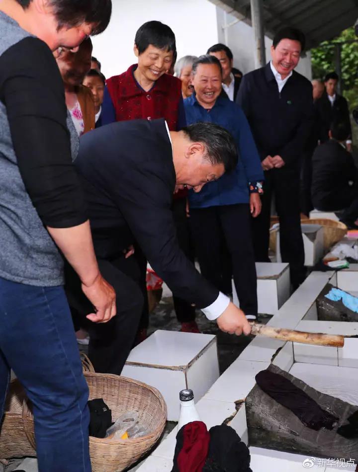 正在村里洗衣服的幾位村民告訴總書記,過去是在江邊洗衣服,現(xiàn)在村里建起了便民洗衣池,用上了自來水,污水集中處理,既尊重了生活習(xí)慣又很環(huán)保。總書記接過洗衣用的棒槌,俯下身,試著捶打了幾下衣服,說:現(xiàn)在洗衣服也是綠色環(huán)保的了。習(xí)近平說,看見大家日子過得好,我高興!