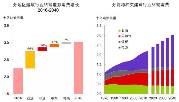 ◆這些地區(qū)大部分地方氣候相對溫暖,這意昧著用于空間加熱的能源需求增長較小。而大部分需求由空間降溫(空調(diào))驅(qū)動,還有經(jīng)濟(jì)發(fā)展后照明和電器使用需求上升,共同驅(qū)動能源需求增加。